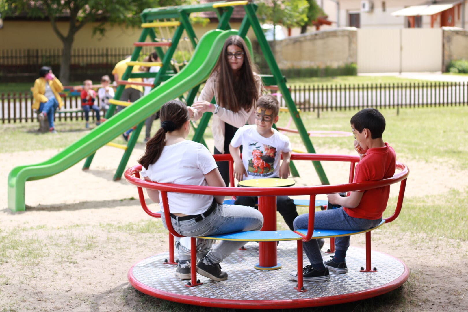 Az óvodai játszótér mellett az általános iskola területén, valamint a művelődési ház mellett készült el az új, kisgyermekes családoknak is kedvező közösségi színtér.